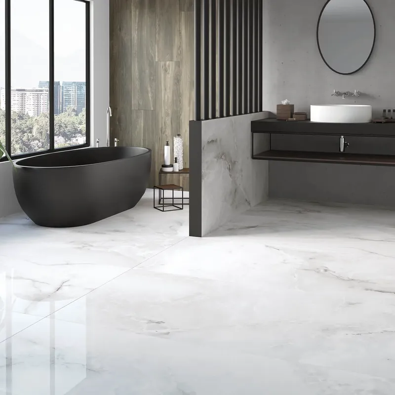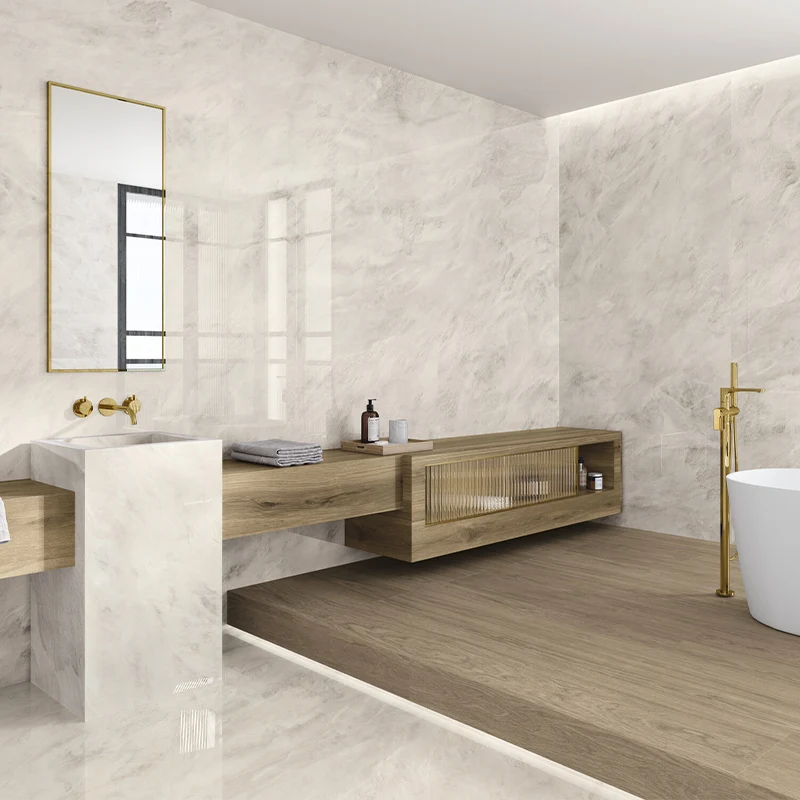 A recente popularidade do porcelanato gigante, que muitos escolhem como a opção preferida, é bem merecida. Com o seu aspeto moderno sem juntas e a sua adaptabilidade a qualquer espaço, é o complemento perfeito e elegante.