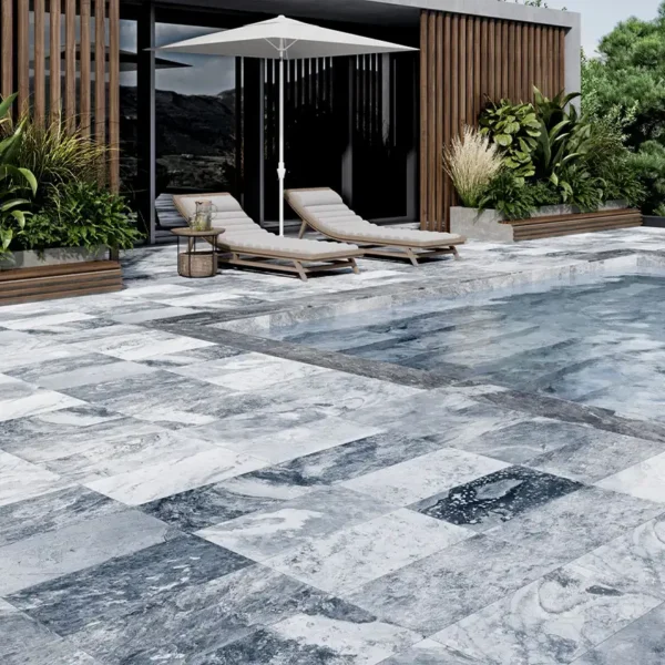 Na nossa loja, pode encontrar uma variedade de efeitos e acabamentos. Oferecemos efeitos de madeira, cimento e mármore, todos em grés porcelânico perfeitamente adaptado para uso exterior.